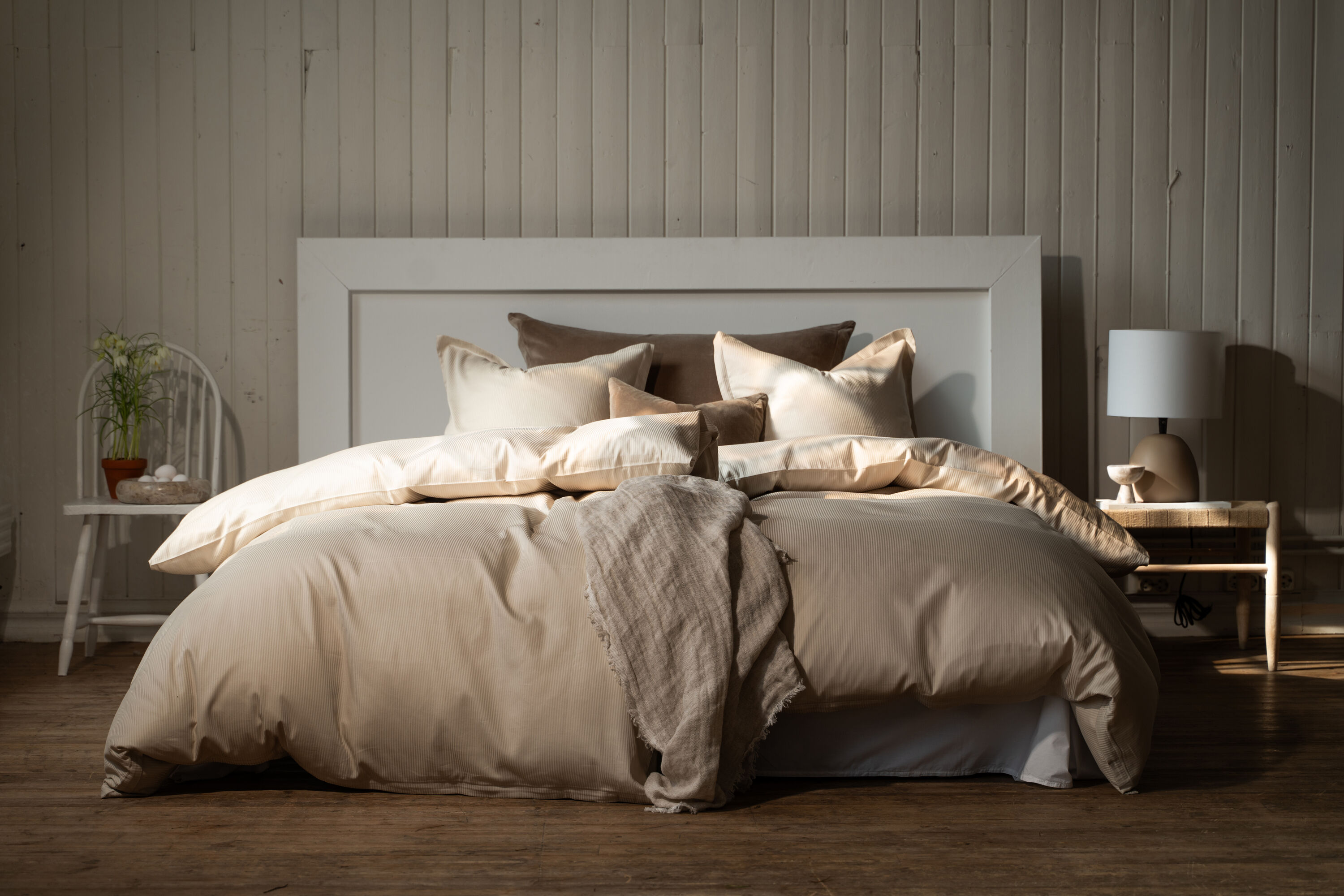 Med Turiform Turistripa sengetøj i beige stribet får du et tidløst sengesæt i skandinavisk design, hvor bæredygtighed, luksus og allergivenlig komfort går hånd i hånd.