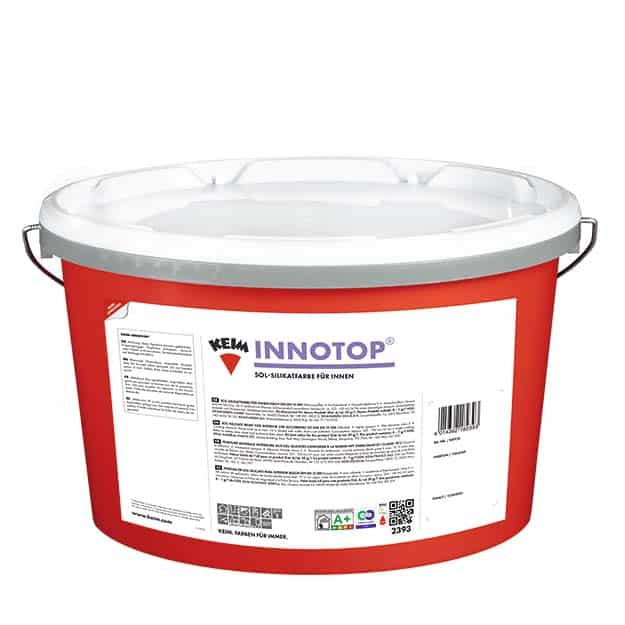 KEIM Innotop er en høj kvalitets, mineralsk indendørsmaling, som kombinerer æstetik, holdbarhed og et sundt indeklima. Malingen er klar til brug, nem at påføre og giver et smukt, mat udseende på vægge og lofter. Den kan tones i mere end 200 forskellige farvenuancer.
